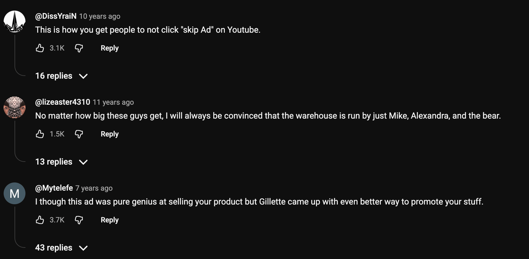 These are comments from the original YouTube video from 2012