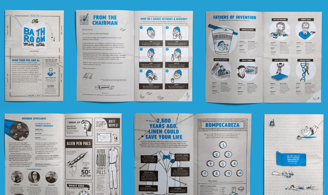 In 2014, Dollar Shave Club launched a free print magazine called Bathroom Minutes.